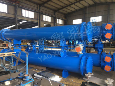 該冷卻器采用雙聯結構,由兩只相同面積的冷油器和三通閥裝置構成,一只工作,一只備用,每個冷卻器能承擔整個系統的冷卻負荷,管板一頭固定,一頭浮動、可拆卸的管束和水室箱蓋,便于運行過程中清洗、檢查和維修。冷卻器的材質,根據使用場所、水系統條件可有多種選擇。